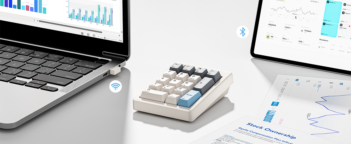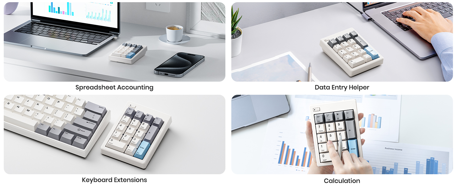 【Connect How You Like】Experience unparalleled versatility with FD17 mechanical numpad dual-mode connection : Bluetooth 5.0 and 2.4G wireless. Our keypad seamlessly switch between different devices and systems with minimal latency, works great connects easily runs on 1 x AAA battery (NOT INCLUDED),no more charging or cords to bring you more convenience. 【17 Keys Practical Layout】Compare with other standard keypad, the 10 keys extended some buttons at the top, contain ESC, Tab, backspace, calculator to ensure that every key is exactly what you need. This number keypad with dimensions of 3.6 x 4.8 x 1.6 inches, takes up little space for you to work anywhere. Continuing the color and design style of all Kisnt’s keyboard series and keep the unmatched quality at the same, we will do what it takes to get you to like our keyboard. 【Gasket Mounted & Creamy Sound】The number pad is gasket mounted to absorb sound effectively to meet your comfort in mind. Enhanced with a silicone plate and base dampener, along with layers of sound-dampening foam. Perfect creamy sound let the numeric keypad itself feels great under the hand. 【Smooth Linear Switches & Hot-Swappable】Equipped with pre-lubed linear switches, give an incredibly tactile feel,striking a perfect balance between clickiness and noise .Best of all the switches are hot-swappable with either 5-pin or 3-pin options, enjoy the fun of making your own keyboard. 【Widely Application】The mechanical number pad widely compatible with your computer or laptop and almost all operating systems with Windows Mac OS, Android. It's a great addition to any setup even if you already have a full size keyboard with a numpad. You can also try setting it up on the left hand side. ( NOTE: The 10-key is not compatible with ChromeBook and not fully compatible with Mac OS. Because Apple products do not support external function key buttons)
