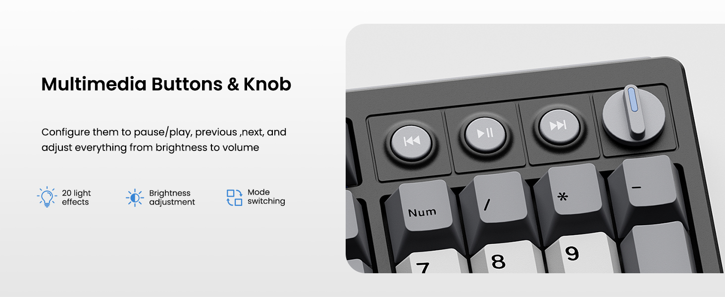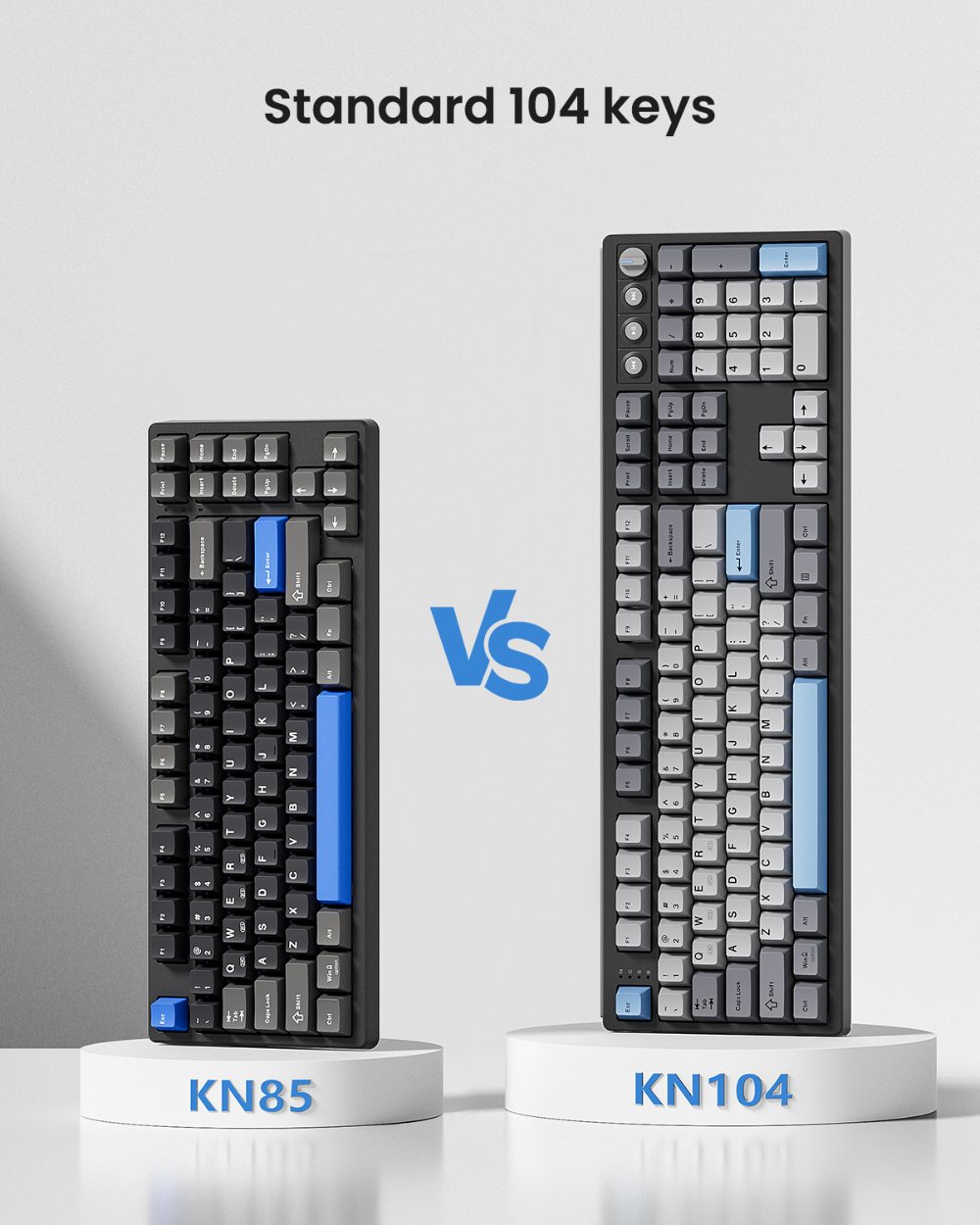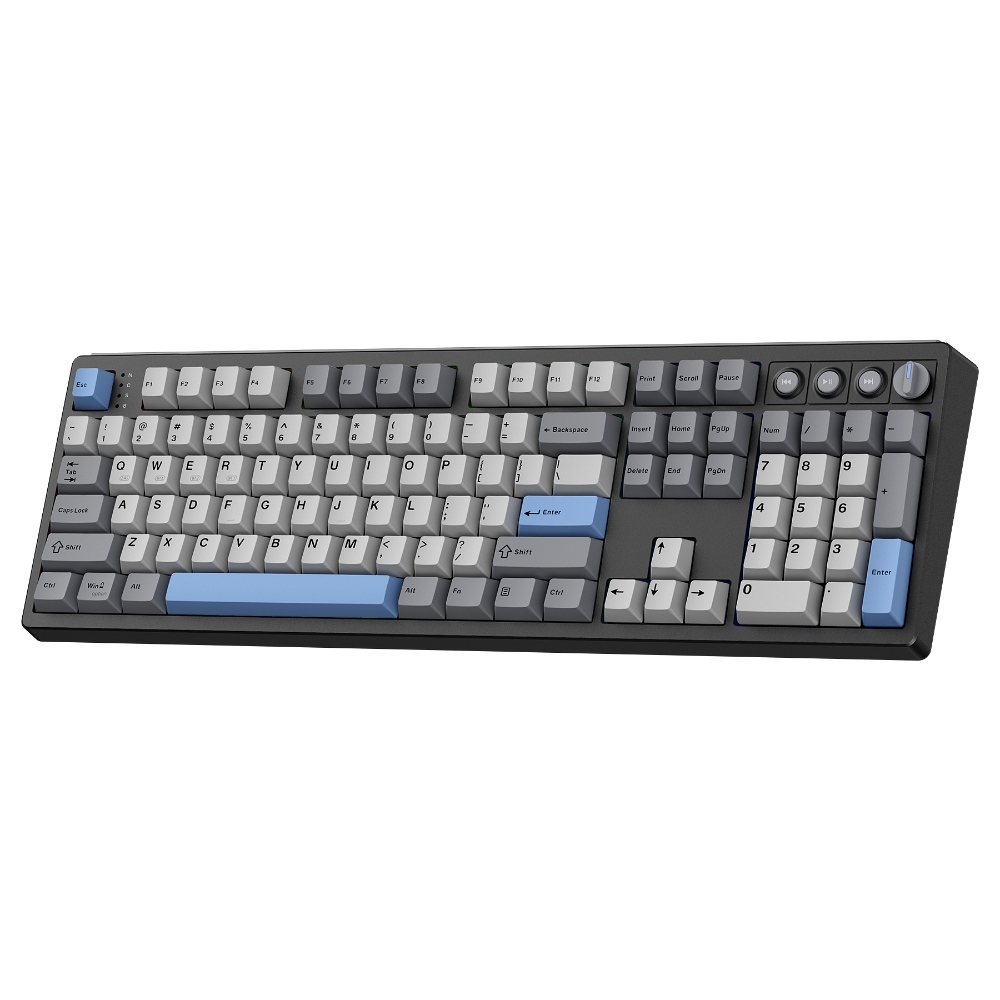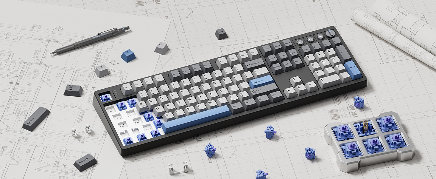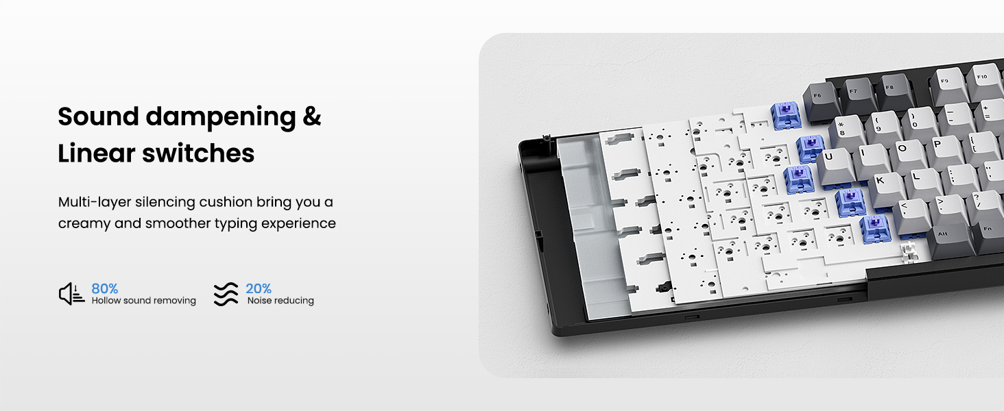 【Inspiration of KN104】Expanding from 75% compact to 100% full size, Kisnt has always been committed to meet your diverse usage needs. The KN104 mechanical keyboard retains the same premium sound and performance as KN85, while upgraded standard 104 keys layout with dedicated knob and four media keys, which is handy for volume or brightness control. It would be larger than what you are used to, but every bit of that extra real estate earns all maximize your daily productivity. 【Wireless Connectivity with Limitless Compatibility】 The gaming keyboard works the way you'd expect for wired (USB-C, also used for charging), 2.4G with a dongle (stored in bottom slot when not in use), Bluetooth (3 devices supported, like most BT keyboards). By offering all three modes of connection, allows you to switch between convenience and stability depending on your needs. The 4000mAh rechargeable battery life lasts for days on a full charge, so you won’t need to worry about constantly recharging it. 【Reunited with Kisnt’s Creamy】Designed with your comfort in mind, this gasket keyboard absorbing sound effectively. Enhanced with a silicone plate and base dampener, five layers of sound-dampening foam, the keys are just the right combination of clicky and clacky, even the space bar and other larger keys without being overly loud or hollow! It's the kind of sound that makes people around you comment " how nice it is "and generates interest in mechs, instead of "what‘s wrong with your keyboard?" The feeling will have you never back to a regular keyboard again. 【Hot-swappable Custom Keyboard】Have fun customizing the acoustic performance and typing feel to your own preference. Hot-swap PCB allows you to replace 3 pins/5 pins switches freely without a soldering issue. The typing perception is buttery smooth thanks to the pre-lubed Bsun linear switches. The black scheme provides a classic and versatile look. Whether you want calm or focused, it makes your office corner feel like yourself. 【RGB Lighting and Programmable】The 100% sized keyboard has 20 RGB lighting effects, which you can adjust brightness and flow rate. The decorative light bars on both sides are colorful and add a strong gaming atmosphere. Effortlessly create keyboard shortcuts, macros, and customize RGB LED colors through Kisnt dedicated software. Note:The driver only supports windows system in wired/2.4G mode. 【2 Years After-Sales Service】Any quality issues in 2 years? A new one on us. Every quality refinement runs through our research, development, production, marketing, and sales processes. We do everything right to get you obsessed with our keyboards.
